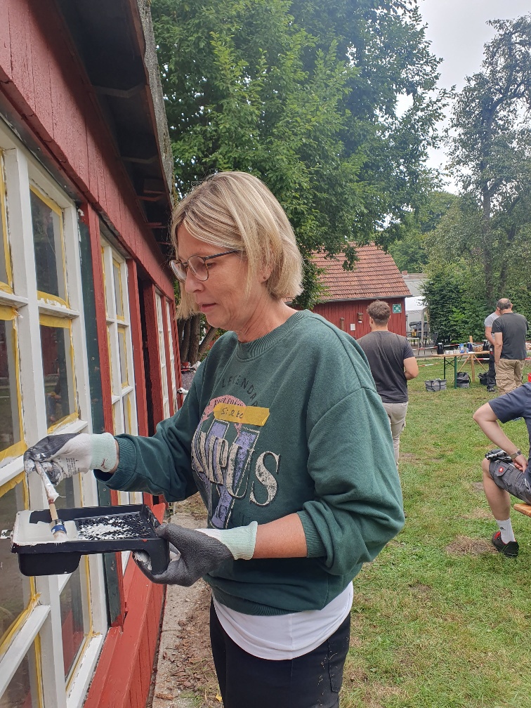 9 Mitarbeitende eines Teams machten sich zur Aufgabe die Hütte „Zur krummen Dachlatte“, die als Abstellfläche genutzt wird, mit einem neuen Farbanstrich in „schwedenrot“ erstrahlen zu lassen. Die hochmotivierte Gruppe war bestens gelaunt und die Stimmung ausgelassen. Nicht zuletzt durch die Verköstigung frisch vom Grill.