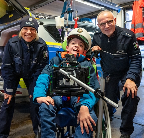 Leuchtende Augen und ein begeistertes Lachen: Die Überraschung für Nico Schweizer aus dem Bethel-Haus Noah ist gelungen! Gemeinsam haben die Bielefelder Polizei und Feuerwehr dem Jungen einen unvergesslichen Nachmittag bereitet.